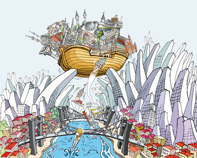 Şehre doğduğum, çocukluğumun, gençliğimin geçtiği yerin karşı yakasından bakıyorum. Yani şu anlarda Asya yakasında Kuzguncuk’tayım. Bu ne zulümdür anlatamam. Boğaz’a bakıyorsun, gökdelenler yükseliyor. Biçimsiz, anlamsız! Bir de ev sahipleri o anlamsız görüntülere “manzara” diyor ve acayip kiralar ödüyor.