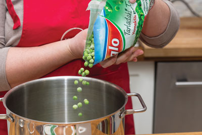 Ben çorba çok severim ve kesinlikle paketten çorba pişirmem. Hiç üşenmem hepsini sıfırdan yaparım. Genelde yağ, un kavurmadan çorbanın kıvamı tutmaz ama bazen de insan “fırt” diye yapılacak tarifler istiyor. Bu bezelye çorbasını yapması daha kolay olamaz, çünkü rejim uğruna bir zamanlar ben uydurdum. Light labne ile yapıyordum. Kabak, balkabağı, brokoli ve karnabahardan da çok güzel olur ama favorim her zaman bezelye. Az bir karbonat bezelyenin yeşil rengini mühürlüyor; labne karıştırınca müthiş parlak bir Nil yeşili oluyor. Anlayacağınız hem göze hem damağa… Annem çok tahıllı tortilla’ları fırınlayıp kıtır üçgenler yapmış geçen hafta, İzmir’de yedim. Hemen onu da yapıp çorbamın yanına kattım. Missss!
