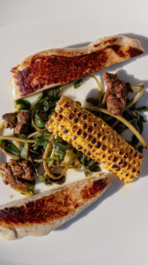 Mezra’da odun ateşinde pişen el açımı gözleme ve börekler de ön plana çıkıyor. Özellikle kabaklı böreği yemeyi ihmal etmeyin. Mezra aynı zamanda ünlü şef Serhat Doğramacı’nın imzasını taşıyan “White Burger by Serhat Doğramacı” markasıyla Türkiye’nin en iyi burgerlerini sunmaktadır.