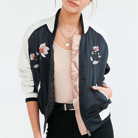 Bomber ceket işine biraz orijinallik katmak isterseniz, farklı kesimler sizi bekliyor. Yukarıdaki örnek gibi… Bu ceketi yırtık jean pantolonlarınızla kombinleyin.