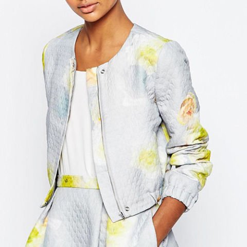 Bu saten ve çiçek detaylı bomber ceket ile moda haftalarında Olivia Palermo’nun yakaladığı görünümü elde edin. 70’ler ruhuna sahip olması da cabası.